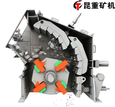 PF系列反擊式破碎機是利用高速回轉的板錘沖擊物料進行破碎。工作時,在電動機的帶動下,轉子高速旋轉,當物料進入破碎腔后即受到轉子沖擊能與反擊裝置撞擊破碎。首先物料通過轉子撞擊到反擊襯板上,然后返回到板錘作用區再次破碎,物料由大到小進入一、二、三反擊腔重復進行破碎,最后物料經過板錘、反擊板的連續多次撞擊作用以及物料之間的相簿碰撞作用,便不斷沿自身的節理面產生裂縫、松散而被破碎。其力度小于板錘和反擊板之間的縫隙時,就從機器下部排出成為合格產品。