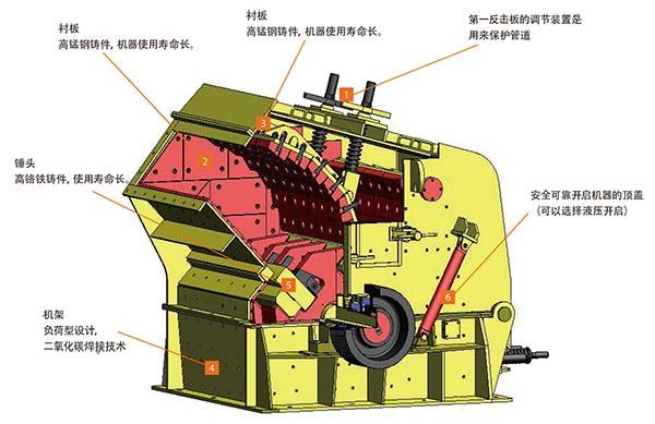 1、高產節能,進料口大,破碎腔高,破碎功能全,生產效率高,簡化破碎流程。