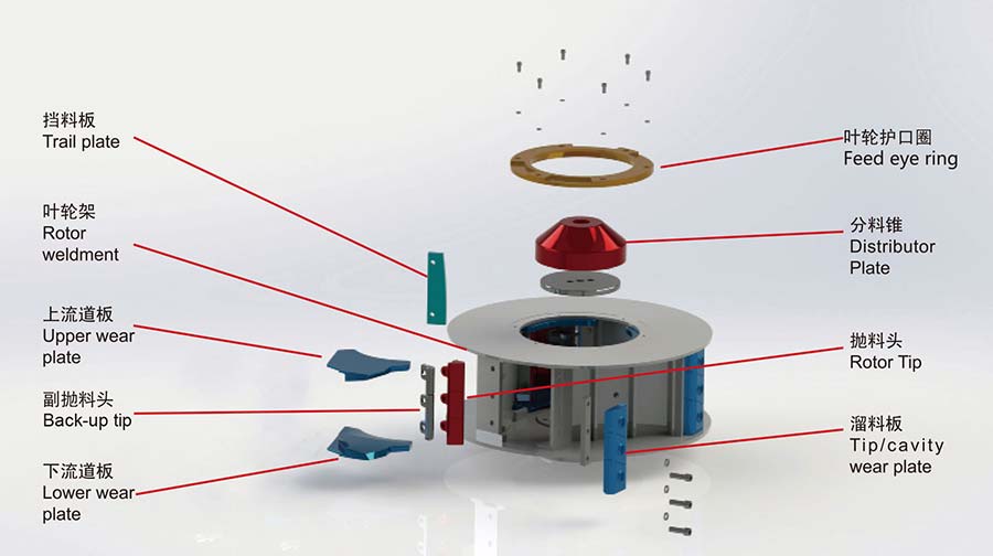 3、優化產品,優化的發射口結構及葉輪內部流暢的料流曲線設計,降低物料流動阻力,提高物料通過量和破碎比,效率更高,粒型更好,產量更大,而維護成本更低。